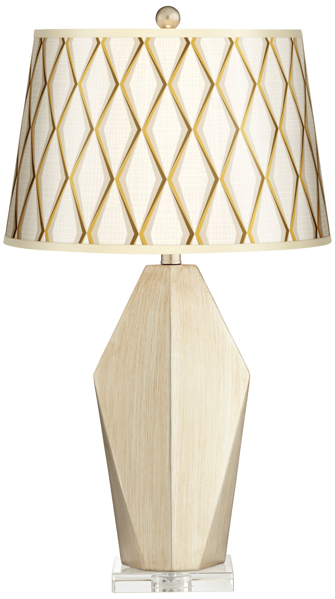 Lighting It Right How To Choose The Perfect Table Lamp Beige bedroom with a wooden bed, striped armchair and a gray chaise lounge by the glass paneled lovely table lamps sit on the sleek nightstands flanking a charming bed that faces a taupe lounge.